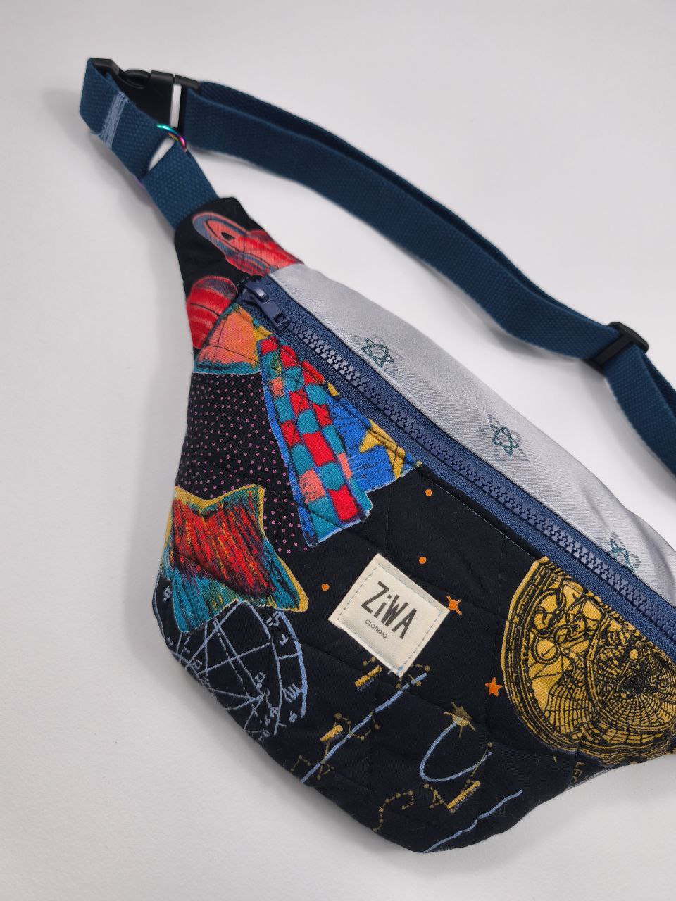 Questo marsupio è un viaggio nello spazio,aggiunge un tocco di audacia a ogni look. Pensato per chi ama distinguersi con stile, è perfetto per portare con sé l’essenziale con leggerezza e originalità. Ogni pezzo è unico, e realizzato con materiali tessili recuperati.