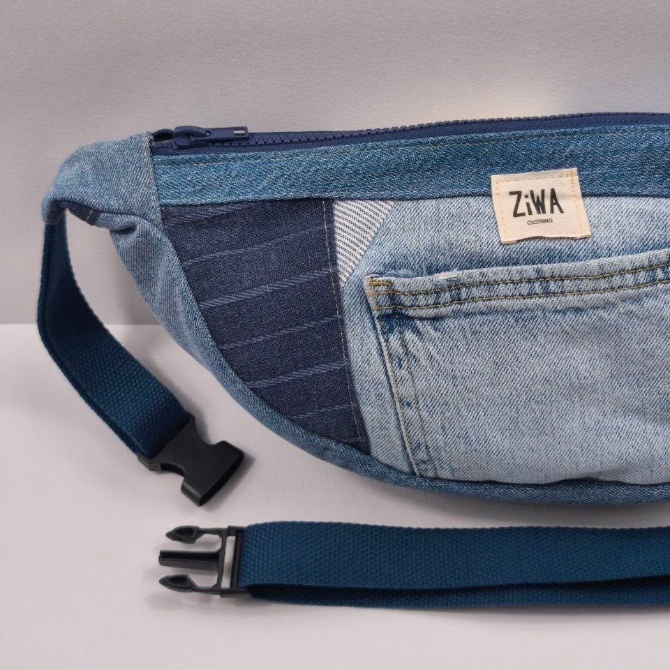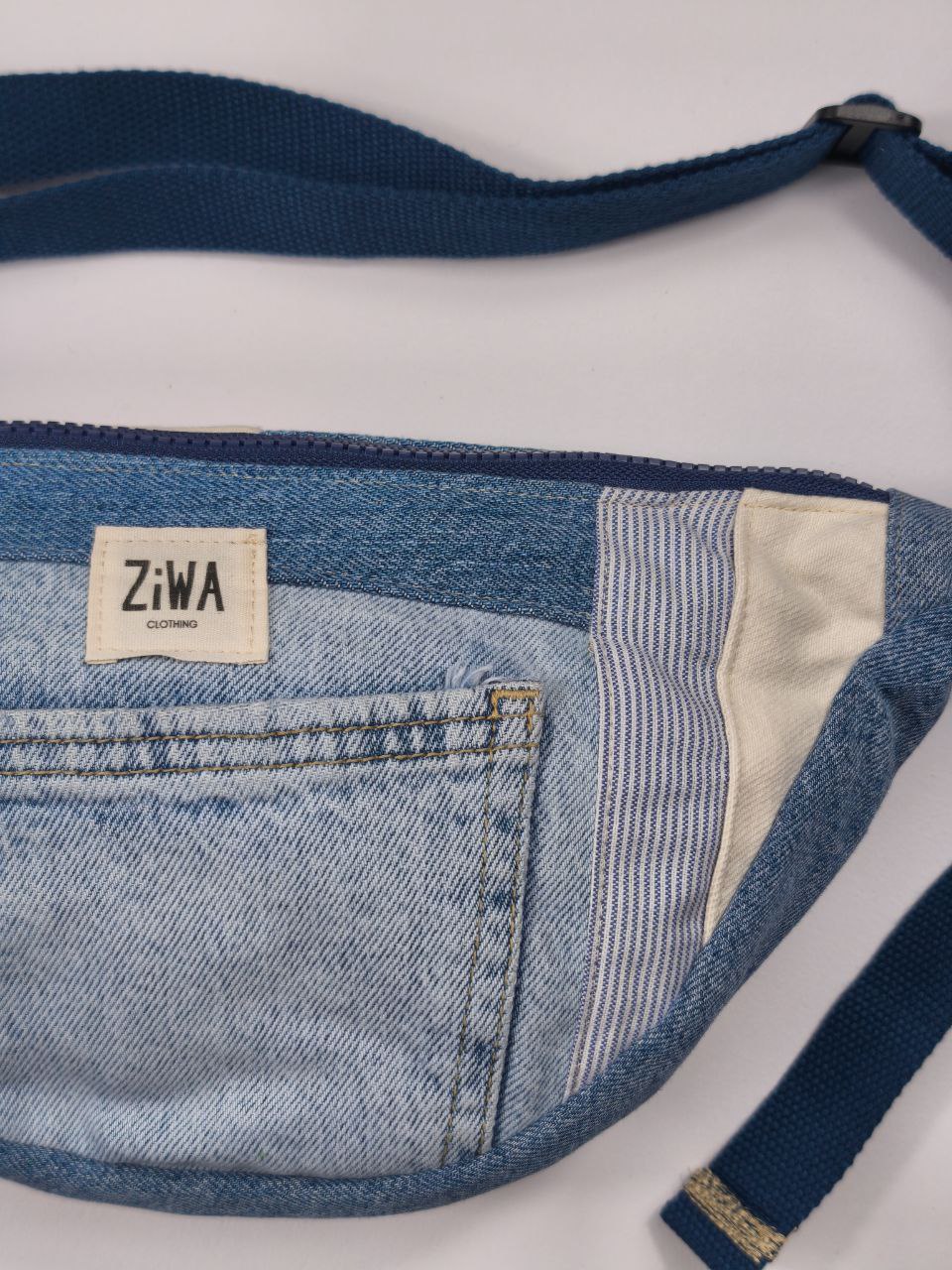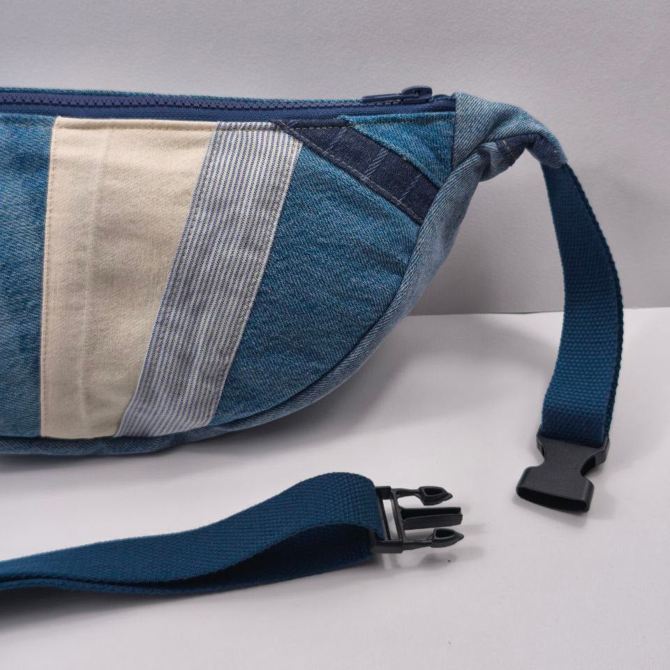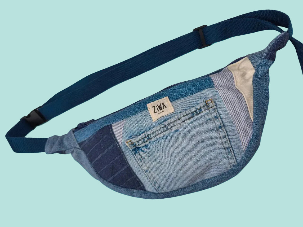 Questo marsupio è realizzato interamente con materiali tessili di recupero. E' molto capiente ed ha all'interno due piccole tasche aperte. Ideale per chi cerca accessori originali e sostenibili.